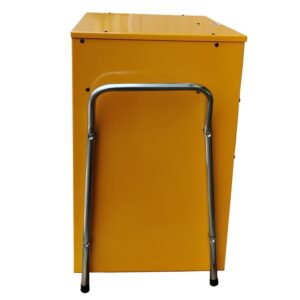 Модель не только надёжная и долговечна, но и привлекательно выглядит, а потому не испортит своим внешним видом даже самый стильный интерьер. Её корпус изготовлен из стали и покрыт краской ярко-жёлтого цвета. Он достаточно прочен для того, чтобы исключить механические повреждения элементов, расположенных внутри.